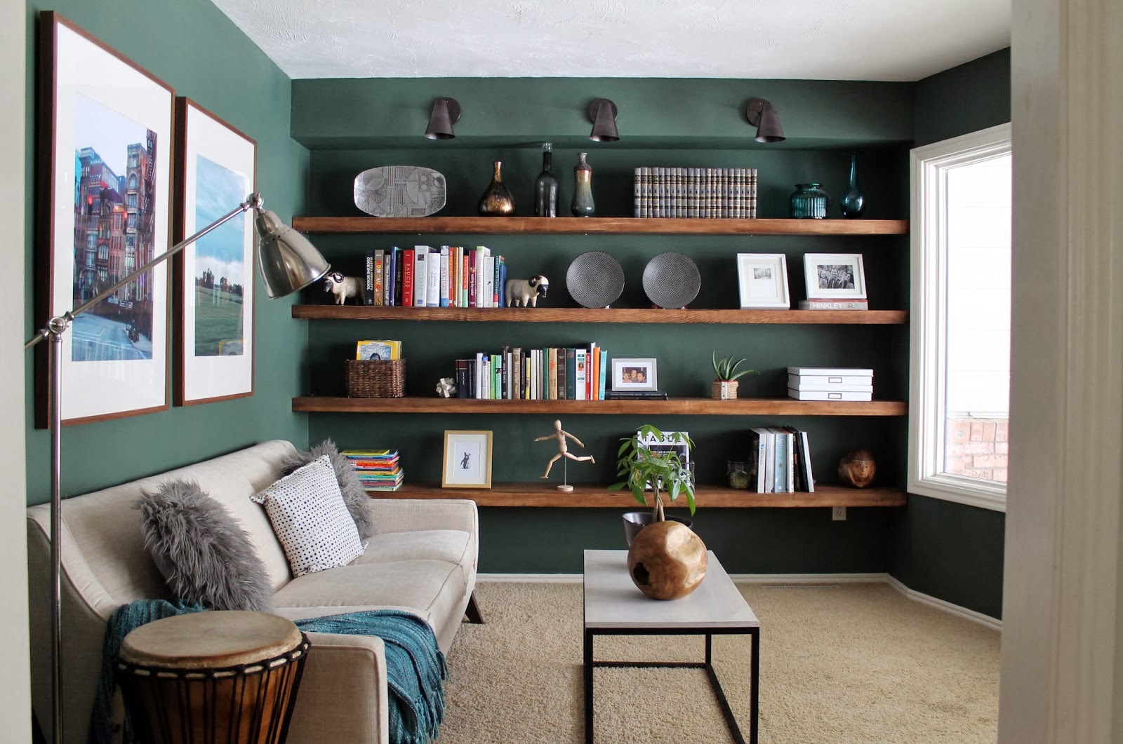 7 – Fotografias são legais, mas não em exagero. Não há problemas em ter uma prateleira com apenas duas fotografias e nada mais. Não tenha medo disso, mas lembre-se de misturar estilos de molduras para criar um efeito interessante na prateleira.