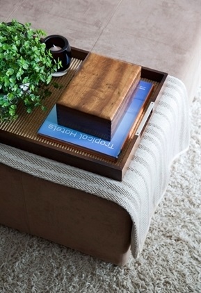 Tire as bandejas do armário! Olha como você cria interesse no conjunto quando dispõe nelas peças pequenas que ficariam ‘sem propósito’ se simplesmente soltas numa superfície maior. A bandeja cria um foco de atenção.